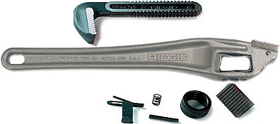 Алюминиевый коленчатый трубный ключ Ridgid Aluminum OffSet Heavy Duty 18" (Риджид Алюминум ОффСет Хэви Дьюти 18") предназначен для труб Ø до 65 мм (2 1/2"), идеально подходит для больших нагрузок и работы в труднодоступных местах.