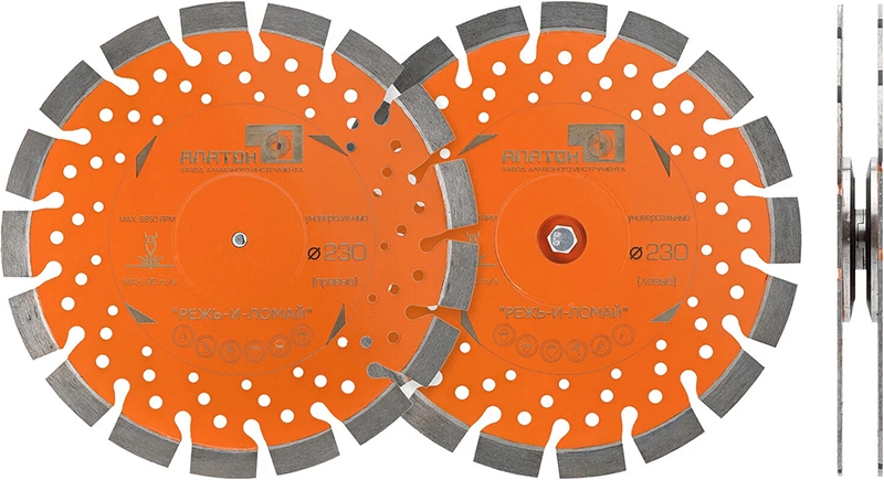 - Левый универсальный алмазный диск Алатон Режь-и-Ломай 230 мм