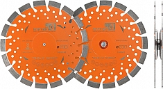Универсальные алмазные диски Алатон Режь-и-Ломай 230 мм (Alaton Cut-n-Break 230 mm) – набор из 2-х алмазных дисков для бензорезов Husqvarna K 760 Cut-n-Break и электрических резчиков Husqvarna K 3000 Cut-n-Break, K 4000 Cut-n-Break для сухой и мокрой резки бетона, железобетона, кирпича и других абразивных материалов, с подачей охлаждающей жидкости (воды) и без нее.